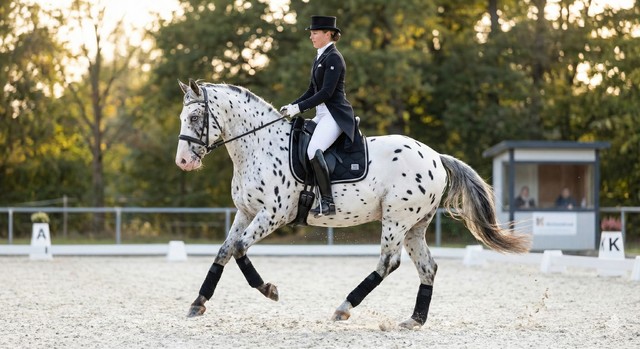 In der dressurmäßigen Arbeit zeigt sie ein hohes Maß an Aufmerksamkeit und Übersicht. Sie arbeitet konzentriert mit, reagiert fein auf die Hilfen und überzeugt durch ihre natürliche Selbsthaltung sowie ihre Bereitschaft zur Versammlung. Besonders hervorzuheben ist ihre ausgeprägte Vorsicht im Bewegungsablauf: Sie setzt ihre Beine bewusst, präzise und kontrolliert ein und zeigt stets ein großes Verantwortungsgefühl für ihre eigenen Bewegungen.