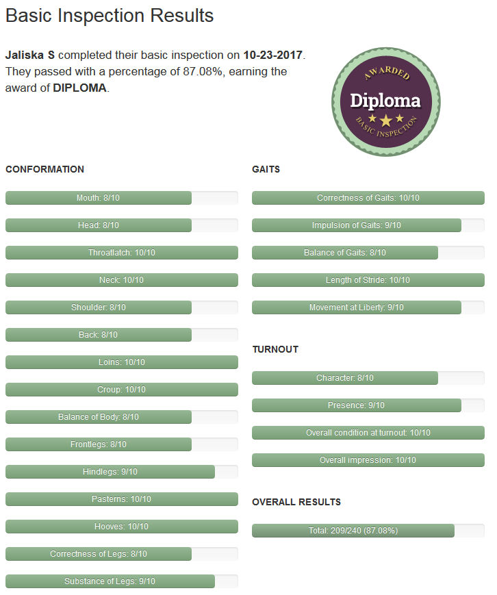 Jaliska S wurde aufgrund von nationalen Erfolgen zur Zuchtbewertung zugelassen und am 16.11.2025 bewertet