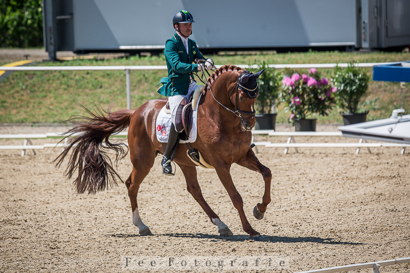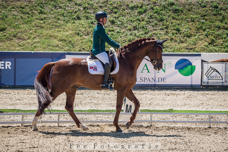 9. Platz06.06.2024 Dressurpferdeprüfung 3+4jährige, Abteilung 1 Tanzen am HaffelseeTeam JamesAndrew Norris